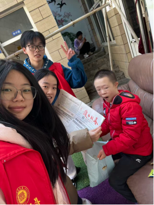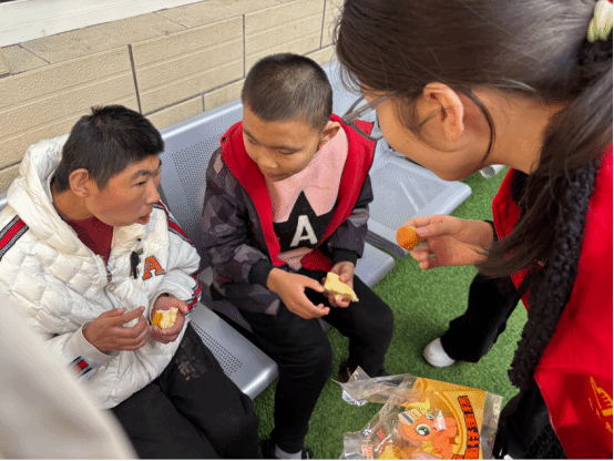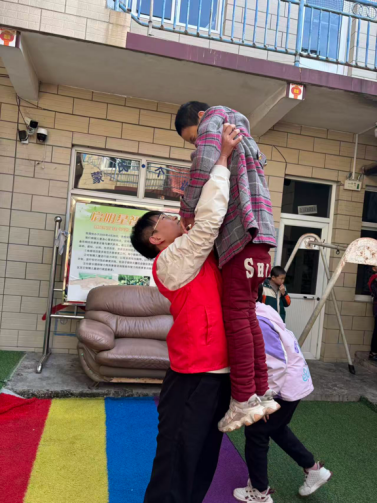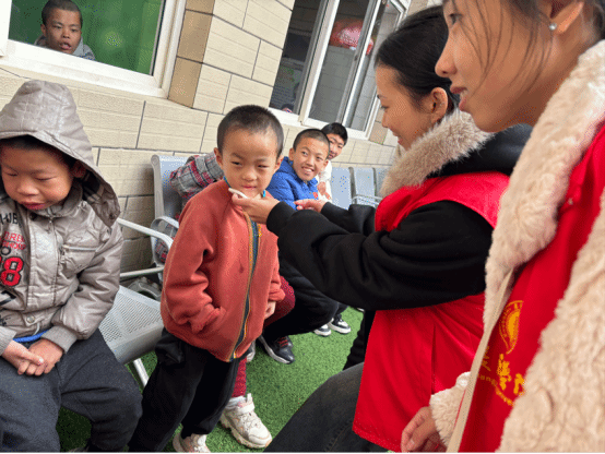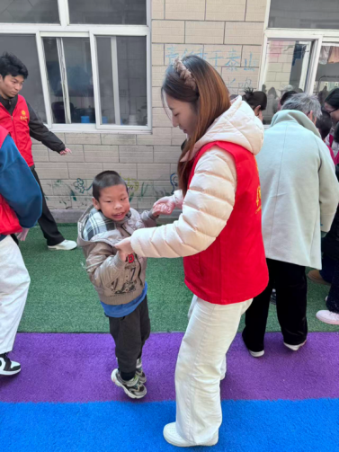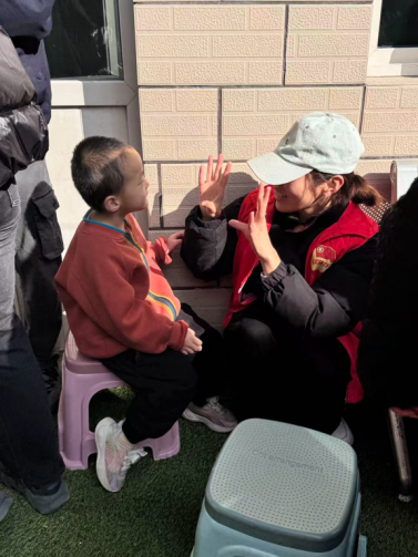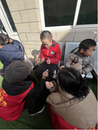 活动伊始,志愿者们以温暖的问候和轻松有趣的互动游戏拉近与孩子们的距离,迅速缓解了他们的紧张情绪,营造出欢乐融洽的氛围。结合特殊儿童的认知特点和感知能力,志愿者们精心准备了适龄化、互动性强的文艺节目,演唱了《小星星》《幸福拍手歌》等节奏轻快、歌词易懂的经典儿歌,并配合简单动作进行表演,引导孩子们跟随节奏拍手、律动,在视听互动中感受艺术的乐趣与情感的共鸣。活动过程中,志愿者们分组陪伴孩子们交流谈心,耐心倾听他们的心声,积极回应他们的需求;同时协助托养中心工作人员整理活动场地,陪伴孩子们进行适度的户外活动,以细致的关怀传递温暖与陪伴。活动最后,志愿者们与孩子们合影留念,并送上精心准备的小礼物,在温馨的氛围中为本次志愿服务画上圆满句号。