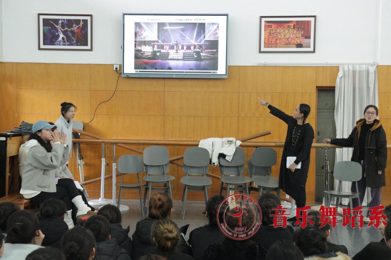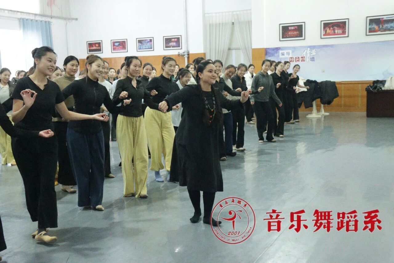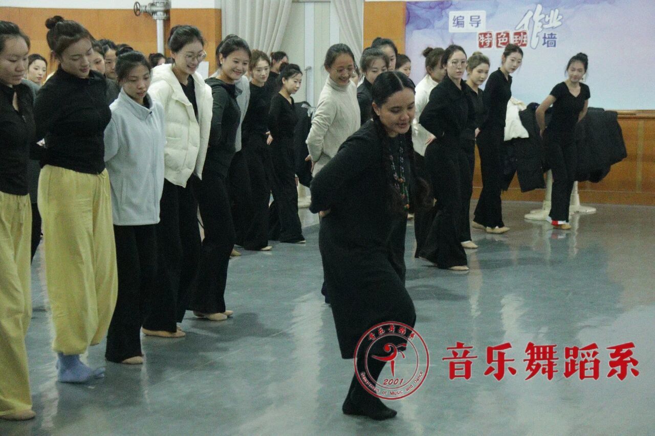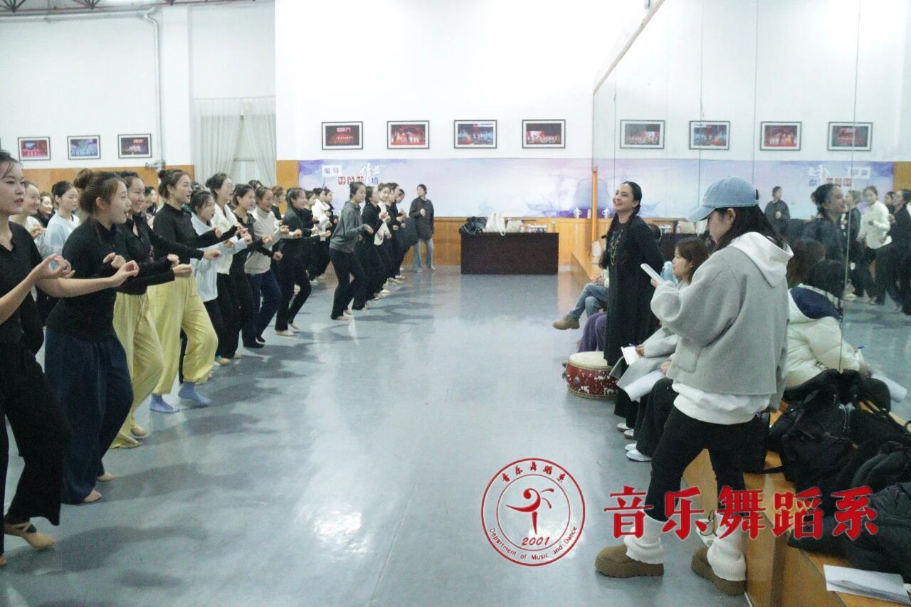 NURULAKMAL博士认真观看了每一组的演出,毫不吝啬地赞叹:“你们不仅捕捉到了这个空间的灵魂,更在协作中迸发出惊人的创造力。每一组作品都让我眼前一亮!”这番真挚的肯定让学生们备受鼓舞。10月23日下午,2号楼六楼舞蹈排练厅内,一场以“数字时代如何维系传统表演艺术”为主题的深度讲座圆满落幕。讲座以马来西亚的传统舞蹈“Begendang Sarawak”为样本,该舞蹈融合鼓、小提琴与多种肢体语言,生动体现了马来文化的深厚底蕴。现场通过梳理其发展脉络,深入探讨了传统艺术在现代化进程中所面临的传播力减弱等现实挑战,并进一步提出社区实践、教育普及、数字化存储与可视化传播等多元保护策略。更引人深思的是,讲座跨界对比了山西民间传统艺术,从中提炼出非物质文化遗产保护的共通路径。导师引经据典,层层剖析,同学们踊跃提问,在思想碰撞中传递出对传统艺术的珍视与反思。作为马来文化中极具代表性的社交舞蹈,tandak 以其独特的节奏、优雅的手势以及凝聚社区情感的精神内涵,成为本次工作坊的学习重点。导师从基本站姿教起,逐步分解舞步韵律,并一一纠正学员的动作细节——无论是手臂的舒展幅度,还是脚步的落地轻重,都耐心指导、反复示范。学员们认真揣摩、积极练习,排练厅内节奏轻快,互动频繁。最终,大家整齐呈现出一段标准的 tandak 舞段,以专注的姿态诠释了对这门传统艺术的理解与热爱。