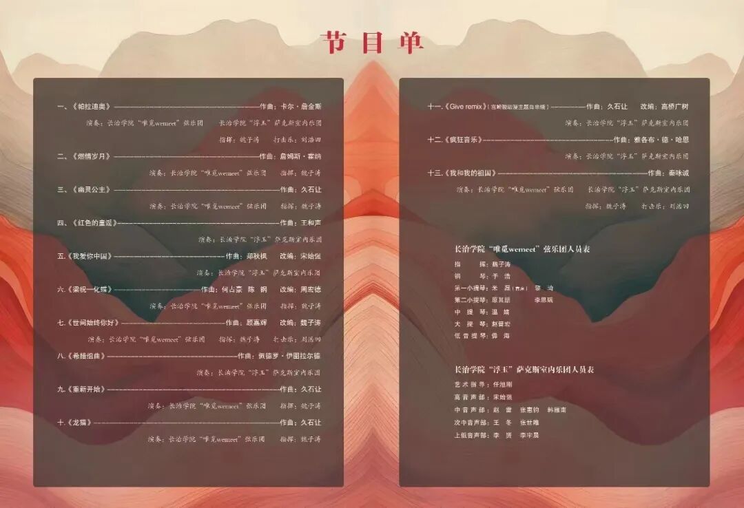 2025年10月23日19:30,长治学院“弦歌管韵”管弦乐室内专场音乐会在一片热烈掌声中圆满落下帷幕。弦乐的温润与管乐的灵动交相辉映,传统韵味与现代风格在舞台上彼此融合,为现场观众留下了一段余音绕梁的音乐记忆。本次音乐会以“艺术实践教学成果汇报”为核心,由校内两大特色乐团——“唯觅wemeet”弦乐团与“浮玉”萨克斯室内乐团联袂演出,呈现风格各异却同样精彩的音乐篇章。两大乐团的出色演绎,不仅展现了成员扎实的艺术功底,更以生动的旋律诠释了“活力长院”的精神风貌,成为音乐舞蹈系实践教学成果的一次生动展示。这场音乐会既是一次高水准的艺术呈现,也是音乐舞蹈系与广大爱乐者之间的一场浪漫约定。曲终人未散,旋律仍回响;落幕不是终点,而是音乐舞蹈系深耕艺术教育、推动学科发展的新起点。未来,我系将继续搭建优质的实践平台,以动人的弦音管韵传递音乐之美,为校园文化建设注入更多鲜活力量。